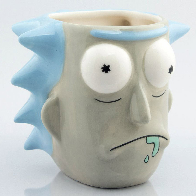 Taza oficial con el motivo de Rick Sanchez basado en la serie de televisión Rick and Morty, realizada en cerámica con una capacidad de 0,50 litros, incluye grabados en el exterior. Viene en caja de regalo. La taza tiene unas dimensiones aproximadas de 14 x 11,5 x 14,5 cm. Producto Oficial Rick & Morty 3D Mug Rick Sanchez realizado por la firma GYE. Tus desayunos no serán los mismos con esta divertida taza. Producto no apto para el lavaplatos y el microondas.