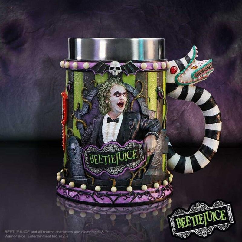 Entre los objetos más llamativos del cine fantástico, esta jarra de cerámica de Beetlejuice destaca por su increíble nivel de detalle y acabado artesanal. Cada relieve, cada color vibrante y cada textura están inspirados directamente en la estética original del clásico de Tim Burton. Su asa, diseñada como el mítico gusano de arena de dos cabezas con sus icónicas rayas negras y blancas, convierte esta pieza en una obra única que combina arte, nostalgia y calidad. La figura de Beetlejuice en el frontal está cuidadosamente modelada para capturar su inconfundible energía caótica, haciendo de esta jarra un artículo imprescindible en cualquier colección de cine. Además, se presenta en una caja de colección con licencia oficial y arte exclusivo, ideal tanto para exhibir como para regalar. Fabricada con materiales duraderos y acabados de primer nivel, esta jarra no solo decora, sino que transporta a ese universo gótico y divertido que marcó una época en la historia del cine.