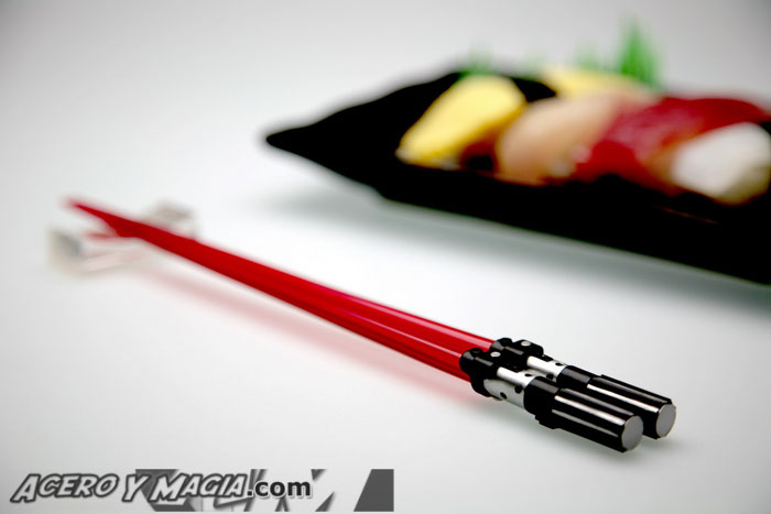 Disfruta de comer Sushi o defender la Galaxia, eso dependerá de ti. Con los palillos chinos de Star Wars podrás disfrutar de tu comida preferida mientras tienes todo el poder de la fuerza entre tus dedos. La caja incluye un pack de palillos de Mace Windu con una longitud aproximada de 23 cm. Producto Oficial de Star Wars realizado por la firma Kotobukiya.