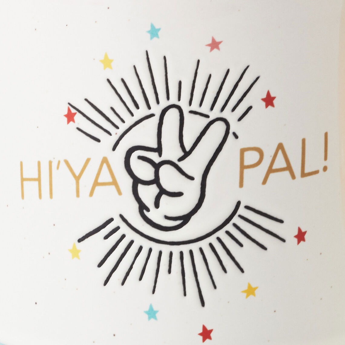 Disfruta de tus bebidas favoritas con la taza Disney Mickey Mouse "Hi'ya pal!" de 620 ml. Esta encantadora taza de cerámica presenta la cara sonriente de Mickey Mouse en el frente y su mano enguantada haciendo el signo de la paz en la parte trasera, acompañada del mensaje "Hi'ya pal!".