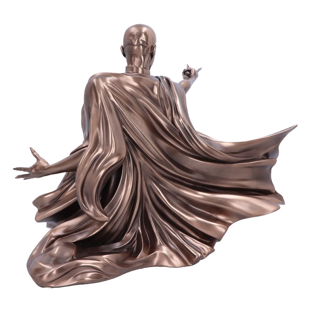 Descubre el Mundo Mágico con esta figura de Voldemort de Harry Potter de bronce con licencia oficial. Como heredero de Salazar Slytherin, Lord Voldemort, formalmente conocido como Tom Marvolo Riddle, es considerado el mago oscuro más poderoso de todos los tiempos en medio de la batalla, con la venganza en los ojos y la varita de saúco agarrada. firmemente en su mano. Fundida en la resina más fina antes de darle un acabado de bronce, esta figura de Lord Voldemort es perfecta para cualquier bruja, mago o muggle por igual. Este busto de bronce viene con "Harry Potter". Mide aprox. 32 cm de alto.
