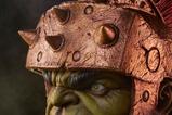 Cada detalle está meticulosamente esculpido, desde el casco romano desgastado en combate hasta la feroz expresión de determinación en el rostro de Hulk. La escena de 360 grados incluye recreaciones icónicas, como la batalla contra los *Devil Corkers* y el inolvidable ascenso de Hulk de gladiador esclavizado a héroe liberador.