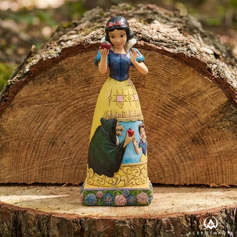 La magia del cuento original se transforma en una pieza decorativa de gran fuerza visual que narra una de las escenas más recordadas de Disney con elegancia y detalle. Diseñada por Jim Shore, esta figura Disney Blancanieves representa a la princesa sosteniendo la manzana con delicada curiosidad, mientras su vestido esculpido cuenta la historia completa a través de relieves, rosemaling y motivos de arte popular que enriquecen cada ángulo de la pieza. El diseño combina narrativa y artesanía en una composición vertical que aporta profundidad, color y simbolismo, reflejando el encanto atemporal de la primera princesa Disney. Con unas dimensiones de 19,5 cm de alto, 8,0 cm de largo y 8,5 cm de ancho, esta figura coleccionable Disney destaca por su presencia elegante y su cuidada proporción, ideal para vitrinas, estanterías o espacios dedicados al cine clásico. La atención al detalle, junto con la calidad de los acabados, convierte esta figura Blancanieves Jim Shore en una pieza de alto valor decorativo y emocional, perfecta como regalo Disney Blancanieves o como elemento central dentro de una colección que busque exclusividad, diseño artístico y una conexión auténtica con las historias más icónicas del cine de animación.