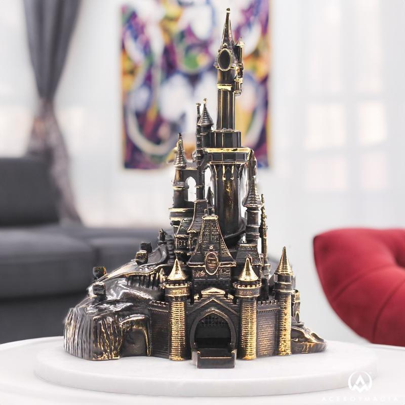 Admira la majestuosidad del castillo de Disneyland Paris con esta impresionante réplica creada por el renombrado escultor italiano A. Gianelli. Esta pieza exquisita está fabricada en alabastro, polvo de mármol y resina, y luego bañada en bronce para darle un acabado final deslumbrante.