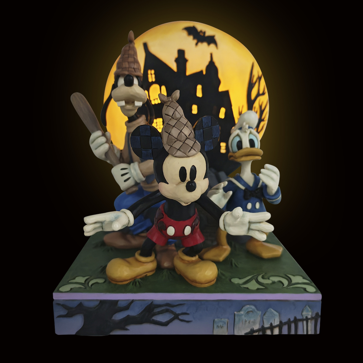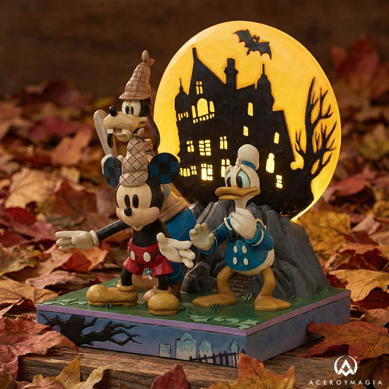 Una escena clásica cobra nueva vida con esta impresionante figura Mickey Mouse Lonesome Ghosts, una obra en resina de Jim Shore que destaca por su estilo artesanal y su inconfundible carácter narrativo. Con una altura de 23,0 cm, esta pieza combina la estética tradicional del artista con la esencia aventurera de Mickey, Goofy y Donald, creando una composición llena de dinamismo y encanto. Cada trazo, textura y color potencia la sensación de movimiento y profundidad, convirtiéndola en una figura capaz de transformar cualquier estantería o vitrina en un pequeño escenario cinematográfico. Su cuidada elaboración transmite autenticidad y calidad, y su presencia escénica añade un toque único para quienes disfrutan del arte inspirado en el universo Disney. Esta figura no solo decora, sino que aporta emoción, nostalgia y un estilo distintivo que la convierte en una pieza imprescindible para quienes buscan enriquecer su colección con algo verdaderamente especial.
