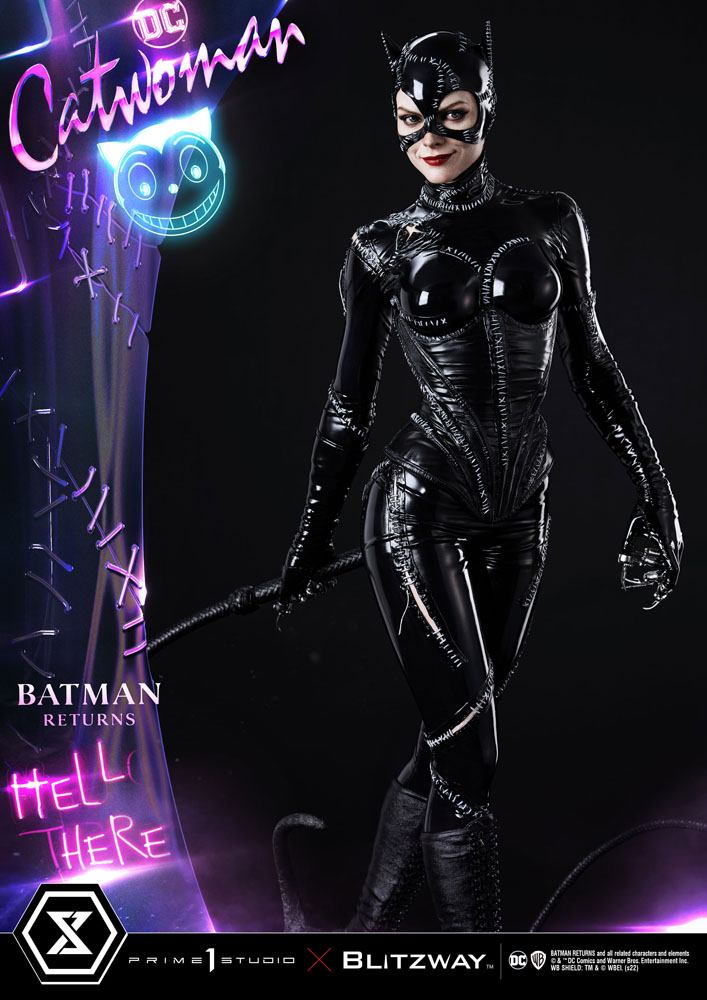 Prime 1 Studio se enorgullece de presentar una colaboración fenomenal con Blitzway y una adición tan esperada a la serie Museum Masterline: ¡la versión extra de Catwoman (Michelle Pfeiffer) a escala 1:3 MMBM-05S de Batman Returns! ¡Prime 1 Studio y Blitzway han superado todas las expectativas y han entregado la representación más sorprendentemente precisa de Catwoman de Michelle Pfeiffer de Batman Returns de 1992! Catwoman es una de las villanas más icónicas de Batman's Rogue's Gallery. ¡Y la interpretación de la película es la versión más famosa de ella! ¡Vestida en látex ceñido a la piel y armada con un látigo devastador, Catwoman de Michelle Pfeiffer era irresistible para Batman y todos sus fans! Prime 1 Studio y Blitzway han logrado lo increíble: esta representación de Catwoman con precisión de pantalla es todo un espectáculo para la vista. De arriba a abajo, esta interpretación de Catwoman es perfecta: desde su traje de gato de látex brillante con puntadas blancas, hasta su hermosa y sutil sonrisa, hasta su pose peligrosa sin pretensiones... ¡esta Catwoman es la única! Blitzway hizo un trabajo increíble al crear una mirada juguetona pero peligrosa en el rostro de Catwoman. ¡Una mirada rápida haría que uno confundiera esta estatua con la propia actriz! Seductoramente hermosa por todas partes, esta estatua de casi 30 pulgadas de alto es un festín para los ojos. Las diversas texturas y acabados de esta estatua solo pueden contribuir al impresionante realismo de la pieza. ¡Sin duda, esta estatua es un clásico instantáneo! Estatua con luz de poliresina a escala 1/3, dimensiones aprox. 75 x 31 x 31 cm. Modelo finalizado y pintado a mano. Licencia oficial. Edición limitada. La versión Bonus viene con: una estatua de Miss Kitty. Este Bonus está oficialmente disponible para pre-pedido.