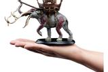 Fabricada principalmente en polystone de alta calidad, la figura presenta a uno de estos colosos avanzando con su torre de hueso retorcido y lianas sobre el lomo, repleta de arqueros, estandartes y lanzas. El realismo de la escultura transmite la fuerza y majestuosidad del mûmakil mientras avanza haciendo temblar la tierra. Con unas dimensiones aproximadas de 16,5 x 11 x 18,8 cm, es perfecta para exhibir sin renunciar al impacto visual.