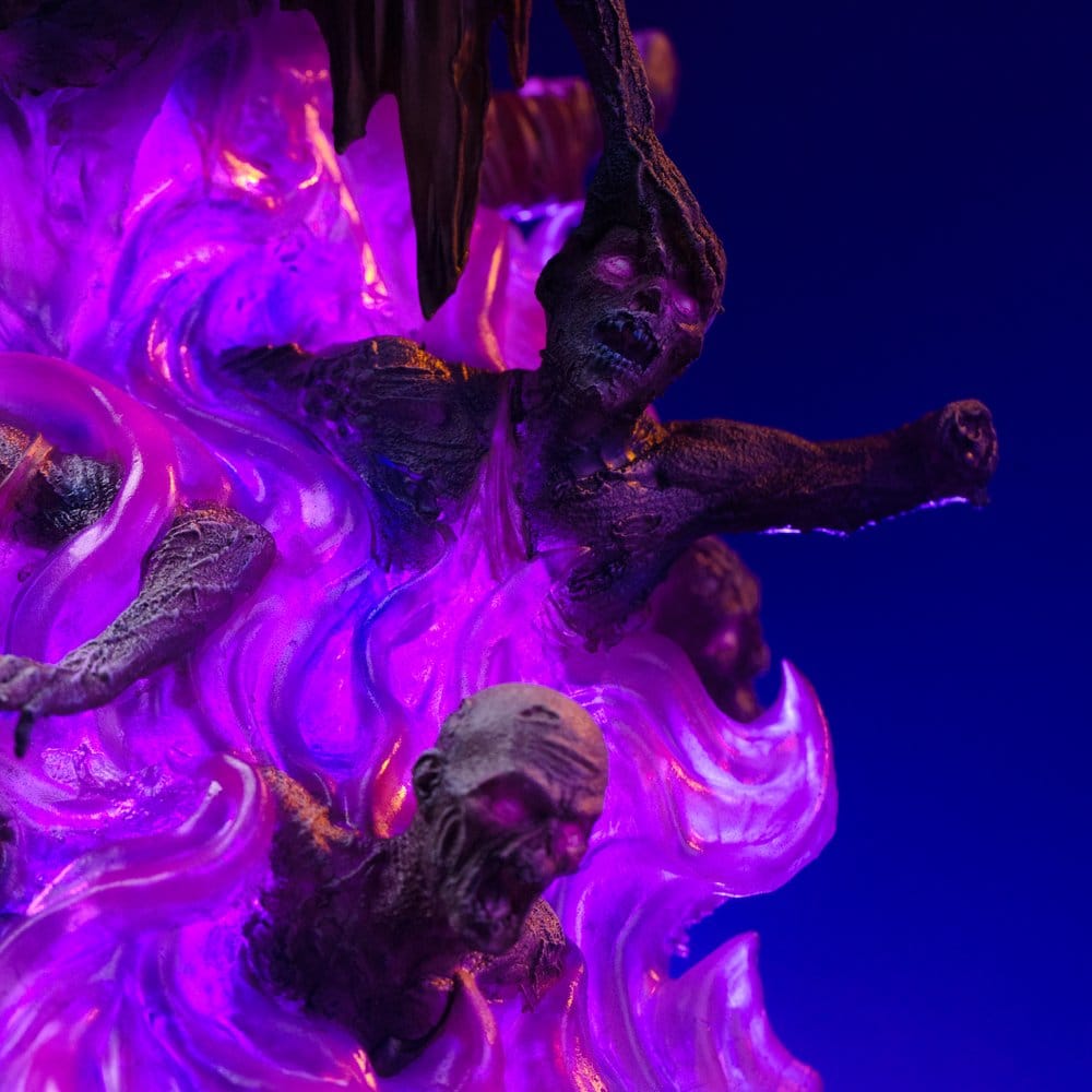 Fabricada en resina de alta calidad, con posibles componentes en polystone, ABS, PVC, metal y tela, esta figura coleccionable de Liliana Vess ofrece un acabado pintado a mano que realza con enorme precisión los pliegues del vestido, la expresión del rostro, los efectos de energía violeta y la base repleta de criaturas surgidas de su magia. Sus medidas aproximadas de 31 x 17 x 16,8 cm, dentro de la escala 1/10, permiten disfrutar de una estatua con altura, volumen y presencia escénica sin exigir un espacio excesivo. La composición transmite movimiento, autoridad y un aura sobrenatural muy fiel al personaje, mientras que la característica especial de incluir 2 cabezas añade valor expositivo y permite personalizar la presentación según el estilo que se quiera mostrar en la colección.