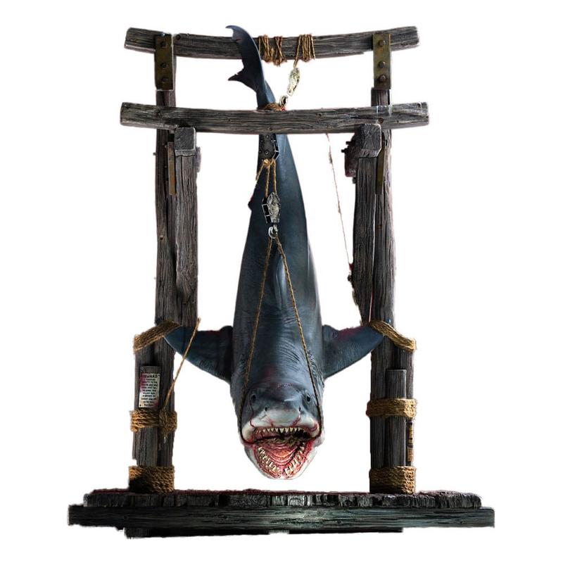 El terror marino más icónico del cine regresa con fuerza en esta espectacular maqueta a escala 1/12 del Tiburón colgante, una pieza de calidad de museo creada por Elite Creature Collectibles en homenaje a los 50 años de Jaws, el clásico atemporal dirigido por Steven Spielberg. Inspirada en la famosa escultura instalada en los parques de Universal Studios, esta estatua captura con precisión el inolvidable momento en el que el gran escualo es exhibido como trofeo… y leyenda.