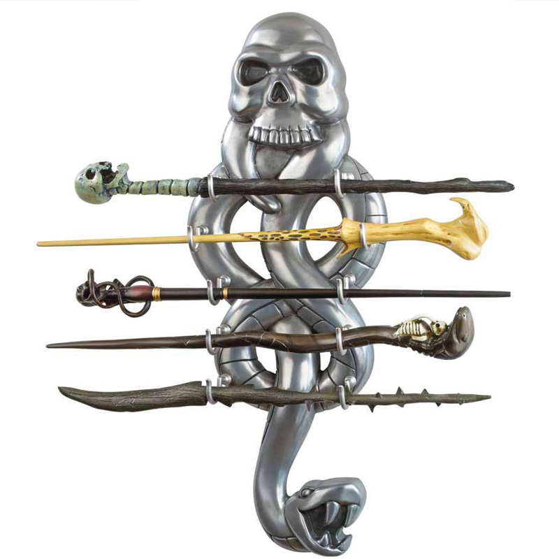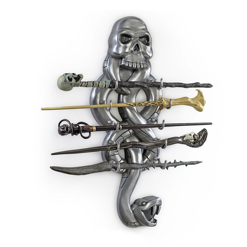 Pack varitas The Dark Mark basado en la saga de Harry Potter. Este precioso pack está compuesto por las varitas de 4 de los mortífagos Skull,, Swirl, Snake Thorn y una varita más que es la del malvado Voldemort Estas preciosas varitas están descansado sobre un expositor en forma de la Marca tenebrosa. Las varitas están realizas en resina, el soporte de la Marca Tenebrosa está realizado en resina y pintado a mano, tiene unas dimensiones aproximadas de 43 x 18 cm. Sin duda este es el complemento perfecto para todas las colecciones de productos oficiales de Harry Potter. La grandeza inspira envidia, la envidia engendra rencor y el rencor genera mentiras. – Lord Voldemort