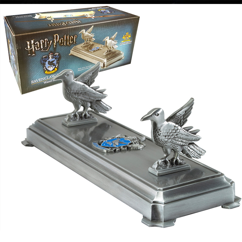 Las varitas mágicas no se pueden tener en cualquier lado, aquí tienes un práctico y precioso soporte de metal fundido basado en el Escudo de Ravenclaw para sostener tu varita preferida, ideal para decorar tu hogar. Este precioso soporte tiene unas medidas aproximadas de 20 x 7 x 7 cm. El complemento ideal para tu varita.