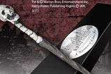 Maléfica réplica oficial de la varita mágica de Mortífago (Cráneo) (Death Eater's Wand in "Harry Potter and the Deathly Hollow") de la película de “Harry Potter, Las Reliquias de la Muerte”. Realizada en resina (Polyresin). Viene en una caja de regalo con una cenefa como adorno. Escala 1:1. Mide 38 cm. de longitud aproximadamente. Incluye placa identificativa.