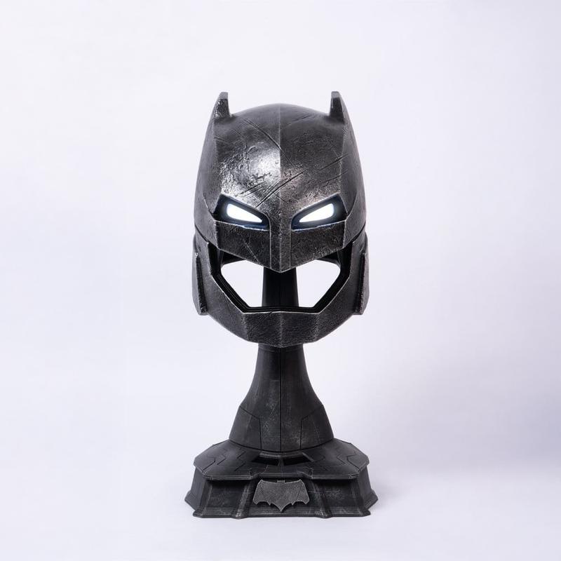 Réplica casco Armored Batman 1:1 50 cm. Hay piezas que decoran una estantería y otras que imponen silencio en la habitación por la fuerza de su diseño; esta pertenece sin duda al segundo grupo.