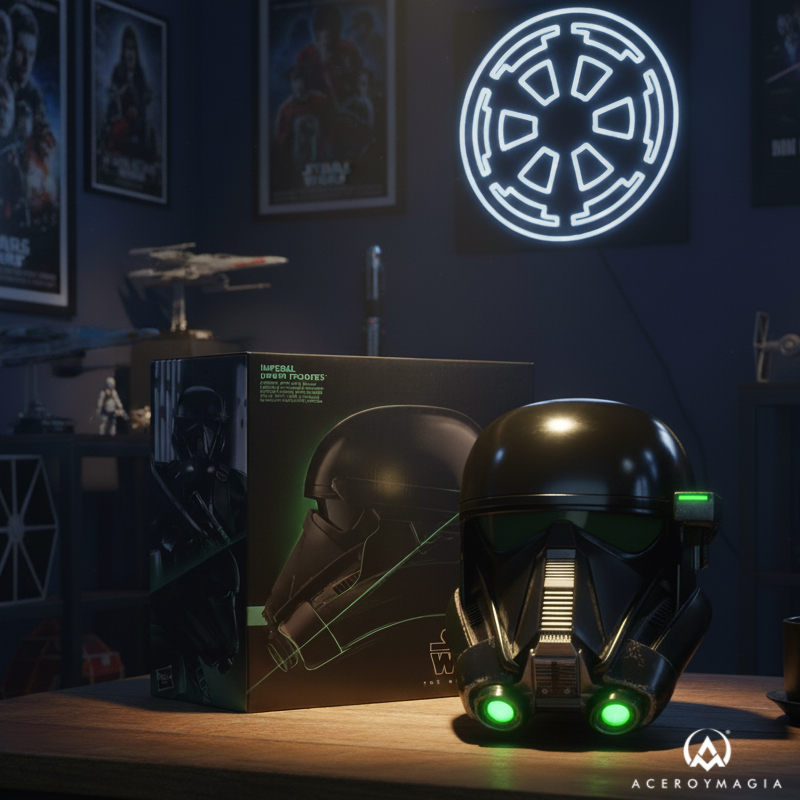 Fabricado con acabados premium y detalles fieles a los utilizados en la película, el casco cuenta con efectos electrónicos que lo convierten en una pieza perfecta tanto para cosplay como para exhibición. Ideal para recrear escenas épicas de Star Wars o simplemente para coronar tu colección como auténtico fan de la saga.