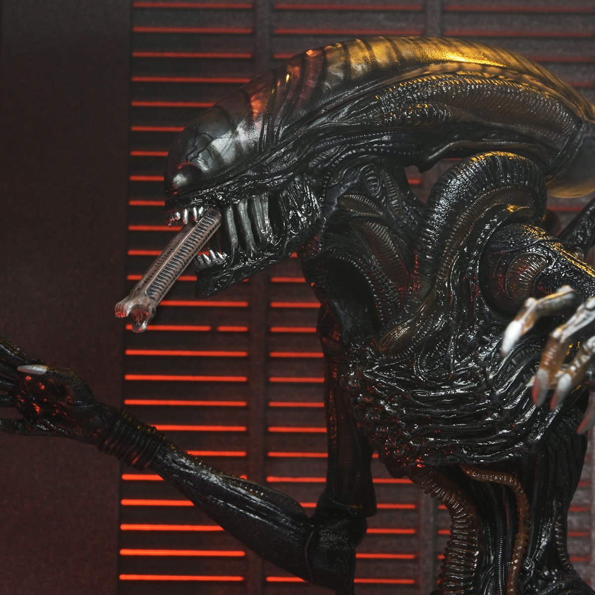 Con 23 puntos de articulación, mandíbula con boca extensible y una cola articulada, esta figura es un verdadero tesoro para los coleccionistas. Entre los accesorios se incluyen manos intercambiables, un facehugger y chestbursters con colas articuladas, todo complementado con un soporte de presentación que permite crear poses dinámicas y aterradoras.