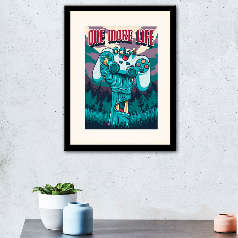 Precioso cuadro de One More Life. Disfruta en tu lugar preferido de tu casa o de tu oficina con este cuadro con paspartú de One More Life, el complemento perfecto para tu rincón Gamer. Un Art Print es una reproducción impresa de una pieza original de arte. Está impreso bajo un acabado con brillo, junto a un marco brillante acorde con la lámina y una calidad de papel muy superior a la de un poster. El Art Print es el complemento ideal para tus paredes. Dará un toque de estilo a tu hogar. Este cuadro tienes unas medidas aproximadas de 30 x 40 cm., y el Art Print tiene un gramaje de 250gr.