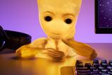 Ilumina tu dormitorio o estantes con este Groot Light with Sound. La luz de 22 cm (8,5") de alto tiene la forma de Groot de Guardians of the Galaxy. Posada con una mano apoyada en su mejilla, su cabeza en forma de árbol presenta una pequeña sonrisa. Encienda la luz y escuche el reconocible al instante "Soy Groot "suena el sonido. Funciona con 3 pilas AAA (no incluidas). Producto con licencia oficial de Marvel.