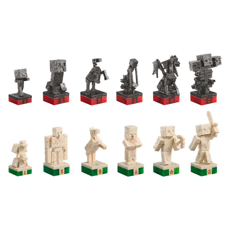 Demuestra tus habilidades estratégicas de juego en la vida real con este set de ajedrez de Minecraft si siempre estás pensando en movimientos futuros. ¿Jugarás como los amistosos personajes del Overworld o tomarás el lado de las oscuras criaturas hostiles?