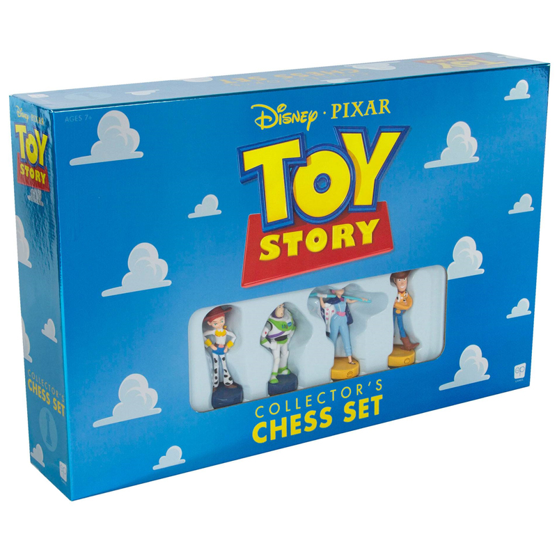 Réplica oficial Toy Story Collector's Set, disfruta horas y horas con los personajes de está emblemática película. Esta recreación del tablero de ajedrez tiene unas dimensiones de 32 x 32 cm., y se acompaña de 32 piezas que reproducen a las aparecidas en la película con unas dimensiones que van de 3 a 6 cm. dependiendo de la pieza. Producto oficial Toy Story Chess Collector's Set Chess sets Disney. Equipo Woody: Woody (Rey), Bo Peep (Reina), Ducky & Bunny (Alfiles), Duque y Buttercup (Caballos), Hamm & Forky (Torres), Sarge (Peones). Equipo Buzz: Buzz Lightyear (Rey), Jessie (Reina), Mr. Pricklepants & Slinky Dog (Alfiles), Dolly y Bullseye (Caballos), Rex & Trixie (Torres), Little Green Aliens (Peones).
