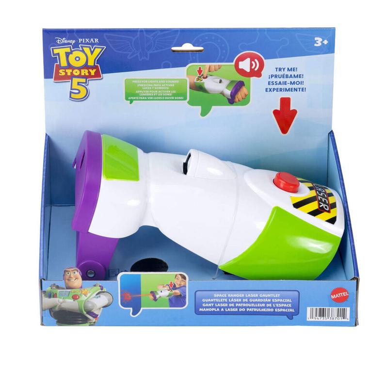 El guantelete láser Buzz Lightyear Toy Story 5 parece arrancado de una misión del Comando Estelar. Blanco, verde y morado brillan con una presencia inmediata, reconocible incluso antes de activar sus luces y sonidos.