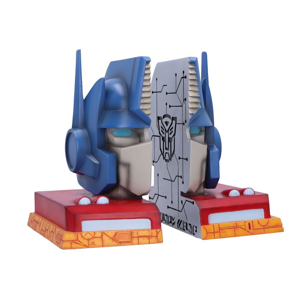¡Organiza tus libros con estilo heroico gracias a los Sujetalibros de Optimus Prime de Transformers! Estos increíbles sujetalibros oficiales presentan a Optimus Prime en su clásica forma G1, posado sobre paneles detallados de Cybertron. Con un acabado cromado en los paneles interiores que muestran su nombre en cybertroniano, estos sujetalibros son una adición imprescindible para cualquier fanático de Transformers.