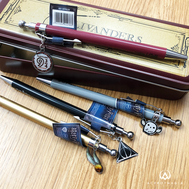 Precioso Bolígrafo con el colgante de la Plataforma 9 3/4 basado en la fantástica saga de Harry Potter. Este precioso bolígrafo tiene un colgante con la forma de la Plataforma 9 3/4 con unos 15 mm. aproximadamente. Todo un articulo de culto para fans de la saga más mágica. Plasma todas tus ideas o firma la carta de Hogwarts con este boligrafo tan cuqui. Bolígrafo oficial de Harry Potter con el logotipo de Warner Bross. Producto oficial Harry Potter Hogwarts Railway 9 3/4 Pen Entertainment Inc. Harry Potter Publishing Rights ©JKR.WB SHIELD: TM & ©WBEI.