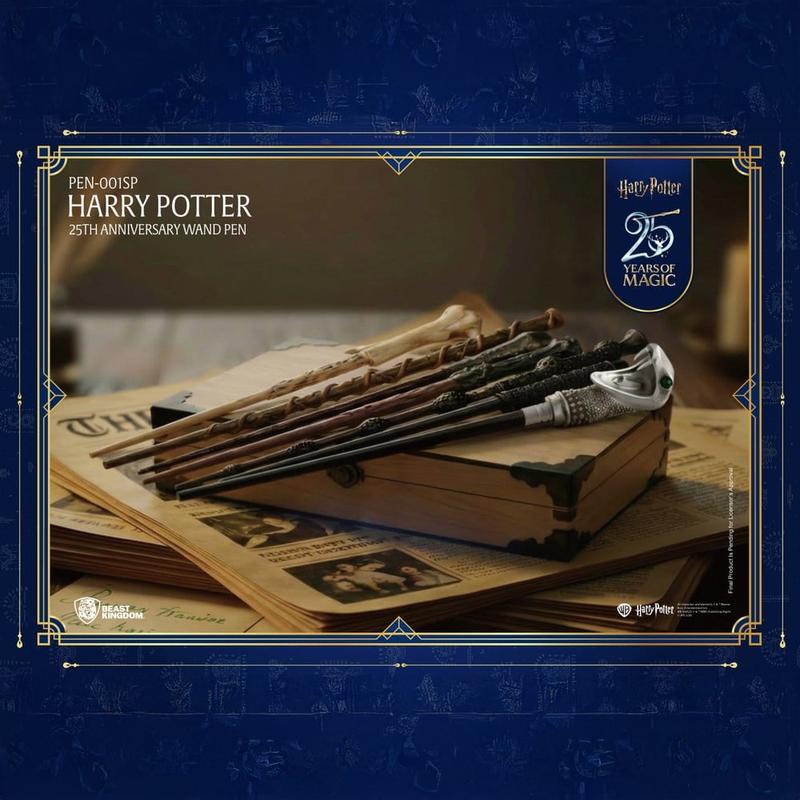 La magia del cine vuelve a tu escritorio con una pieza de coleccionismo que también se usa a diario: la Harry Potter Wand Pen Collection de Beast Kingdom, edición conmemorativa por el 25 aniversario de las películas de Harry Potter. Cada bolígrafo varita Harry Potter reproduce con mimo las formas y texturas vistas en pantalla, logrando un acabado auténtico que destaca tanto en una vitrina como en la mano al escribir. El diseño integra un detalle muy práctico: la zona de agarre funciona como capuchón desmontable, así el bolígrafo queda protegido y listo para acompañarte en clases, oficina o reuniones sin perder el toque cinematográfico. La colección llega en formato Harry Potter Pen Box, ideal para coleccionar y regalar, con 6 + 1 diseños de varitas y un tamaño realista de aproximadamente 28 a 33 cm, pensado para ofrecer una escritura cómoda y con presencia. Entre ellas aparecen referencias icónicas como la legendaria Varita de Saúco, además de las varitas de personajes tan queridos como Ron y Hermione, convirtiendo cada caja en una pequeña celebración del universo Hogwarts. Para quienes buscan algo realmente exclusivo, existe una edición secreta extremadamente codiciada: la varita de Lucius Malfoy, con su inconfundible empuñadura de cabeza de serpiente, reservada solo para los coleccionistas más afortunados. Si buscas merchandising Harry Potter con valor real, con licencia, diseño cuidado y ese punto de rareza que hace especial una colección, esta serie es una elección redonda para sumar magia cotidiana a tu escritorio y elevar tu rincón cinéfilo con una pieza que se nota, se disfruta y se colecciona.