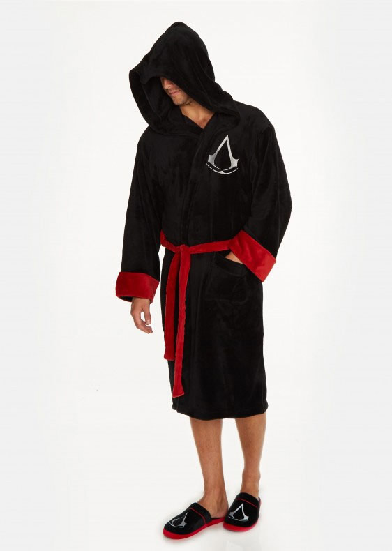 Albornoz negro de Assassin's Creed basado en la popular saga de videojuegos de Assassin's Creed, este fenomenal albornoz está realizado en 100% Poliéster de alta calidad y talla única. Disfruta reviviendo los momentos más emocionantes de los famosos momentos de este espectacular videojuego con este fenomenal albornoz de cine. Tiene un largo aproximado de 118 cm., un ancho de 66 cm., y un largo de manga: 60 cm. Producto oficial Assassin's Creed Fleece Bathrobe White Logo.