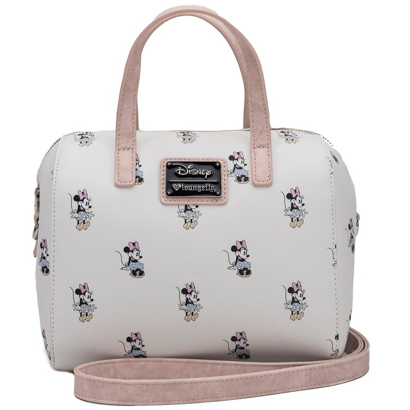 Tierno bolso de Minnie Mouse basado en famoso personaje de Walt Disney. Perfecto para pasar una noche mágica y cuqui. Esta preciosa pieza de coleccionista está realizado en 100% poliéster, tiene unas medidas aproximadas de 22,86 x 15,24 x 15,24 cm. Producto oficial Disney Minnie Print Cream Duffle Bag. El regalo ideal para fans de la ratona más famosa de la factoría Disney.