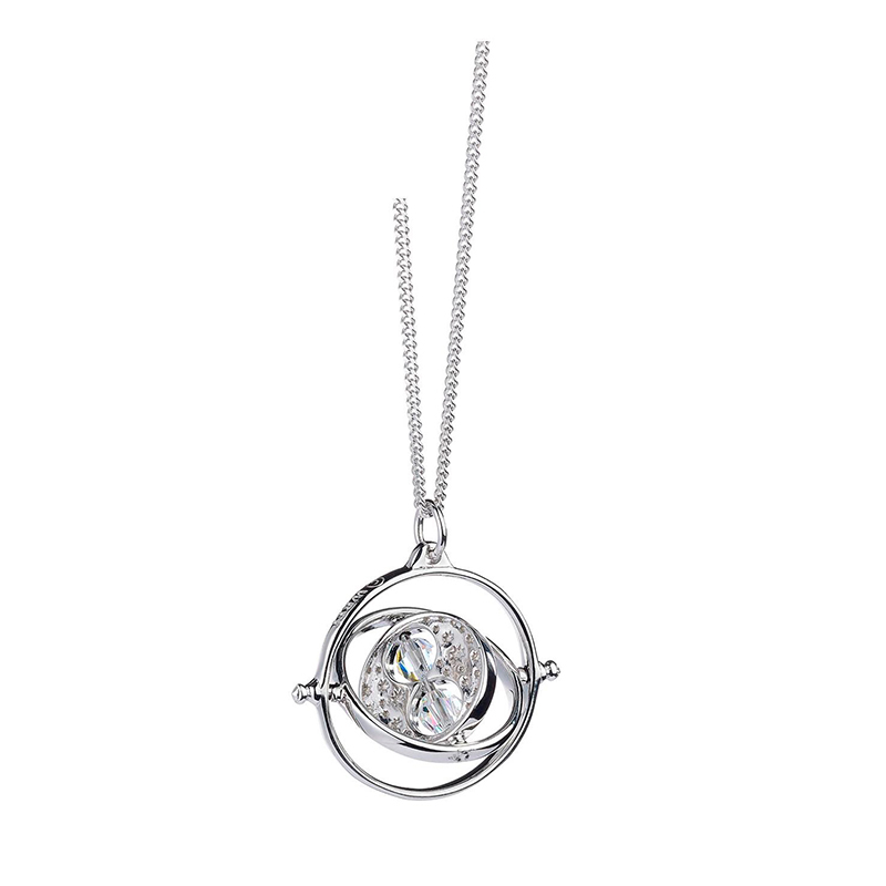 Precioso colgante realizado en plata del Giratiempos de Hermione, esta preciosa pieza de coleccionista está realizado en plata con cristales Swarovski®. El colgante tiene unas dimensiones aproximadas de 28 mm de alto y 28 mm de ancho. Incluye una cadena de plata de unos 45 cm. Todo un articulo de culto para fans de la saga más mágica. El anillo incluye caja oficial de Harry Potter con el logotipo de Warner Bross en el reverso. Producto oficial Entertainment Inc. Harry Potter Publishing Rights ©JKR.WB SHIELD: TM & ©WBEI.