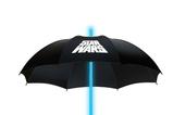 Su dosel negro, adornado con el logotipo de Star Wars en color blanco, aporta un toque elegante y distintivo, convirtiéndolo en el complemento perfecto para los días de lluvia. Además, su estructura resistente garantiza durabilidad y protección en cualquier clima.