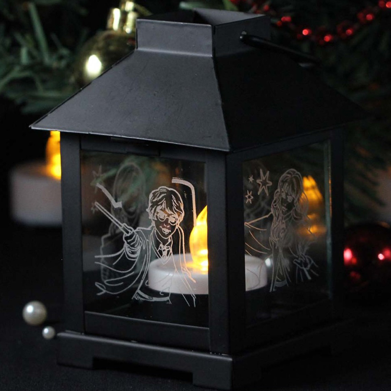 Farolillo de Harry Potter y sus amigos. Este precioso farolillo está realizado en metal y vidrio. Tiene unas dimensiones aproximadas de 11 x 8 x 8 cm.