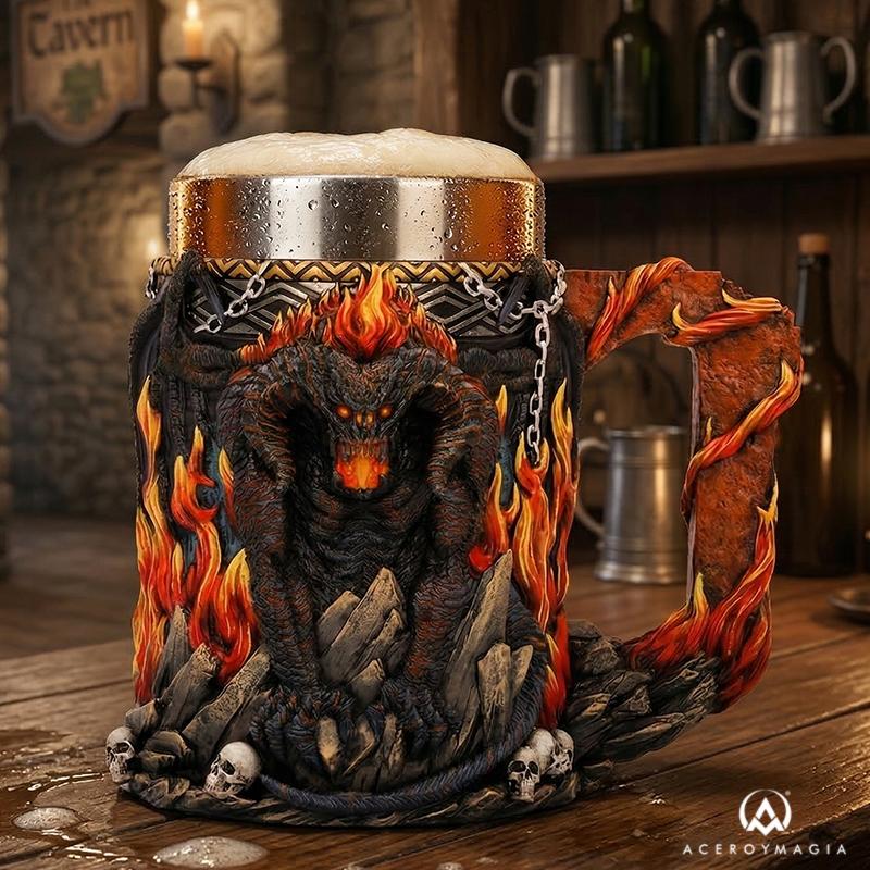 Fuego, oscuridad y una presencia imponente se unen en la Jarra Balrog El Señor de los Anillos para convertir una pieza de uso decorativo en un objeto con auténtico carácter de colección. Esta jarra Balrog con licencia oficial está pintada a mano y elaborada en poliresina, un material que permite apreciar con gran riqueza visual las llamas, las calaveras, las texturas rocosas y la figura central inspirada en una de las criaturas más recordadas de la saga. Su tamaño de aprox. 15 cm la hace muy adecuada para lucir en una vitrina, una estantería o una zona de exposición sin perder protagonismo, ya que ofrece una presencia contundente y un acabado muy llamativo desde cualquier ángulo. La escena frontal, con la referencia al mítico “You shall not pass”, y la parte trasera, dominada por el Balrog entre fuego y piedra, refuerzan su atractivo para quienes buscan una jarra El Señor de los Anillos con diseño trabajado, estética oscura y un acabado que transmite calidad visual. Al tratarse de una pieza pintada a mano, cada detalle gana profundidad y aporta una sensación más artesanal, algo especialmente valorado en el merchandising de fantasía con acabado premium.
