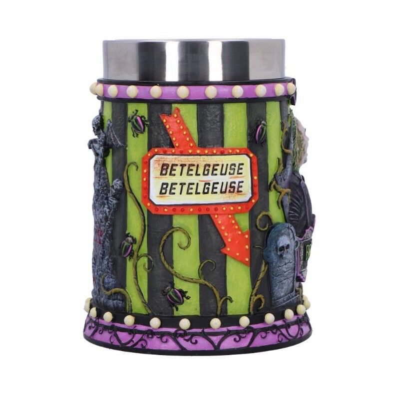Entre los objetos más llamativos del cine fantástico, esta jarra de cerámica de Beetlejuice destaca por su increíble nivel de detalle y acabado artesanal. Cada relieve, cada color vibrante y cada textura están inspirados directamente en la estética original del clásico de Tim Burton. Su asa, diseñada como el mítico gusano de arena de dos cabezas con sus icónicas rayas negras y blancas, convierte esta pieza en una obra única que combina arte, nostalgia y calidad. La figura de Beetlejuice en el frontal está cuidadosamente modelada para capturar su inconfundible energía caótica, haciendo de esta jarra un artículo imprescindible en cualquier colección de cine. Además, se presenta en una caja de colección con licencia oficial y arte exclusivo, ideal tanto para exhibir como para regalar. Fabricada con materiales duraderos y acabados de primer nivel, esta jarra no solo decora, sino que transporta a ese universo gótico y divertido que marcó una época en la historia del cine.
