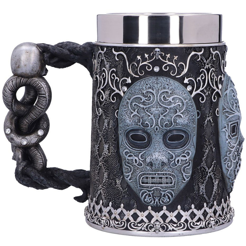 Brutal Jarra de Cerveza con el motivo de Deatheater basada en la saga de Harry Potter. Esta preciosa obra de arte está realizada en acero inoxidable y resina con una capacidad 600 ml, con unas dimensiones aproximadas de 14 x 16 x 10,4 cm. La jarra está pintada a mano y puede retirarse la parte de acero inoxidable para facilitar la limpieza. No dejes pasar el regalo perfecto para los fans de Deatheater y de la cerveza bien fresquita.