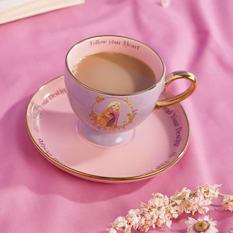 Encanto pastel que conquista a primera vista: este juego de taza y platillo de Rapunzel combina rosa y morado con ribetes dorados en asa y borde, e incluye una ilustración delicada de la princesa y el mensaje “Follow your heart” (Sigue tu corazón) que acompaña cada sorbo con un toque de inspiración. Presentado en caja de regalo y con un diseño cómodo y equilibrado para el uso diario, es una pieza que luce en mesa y también en vitrina, ideal para completar una colección con merchandising Disney oficial de calidad. Si buscas una taza Rapunzel Disney que una estética cuidada y durabilidad, esta taza Princesas Disney es ese detalle especial que transforma la pausa del té en un momento para recordar.