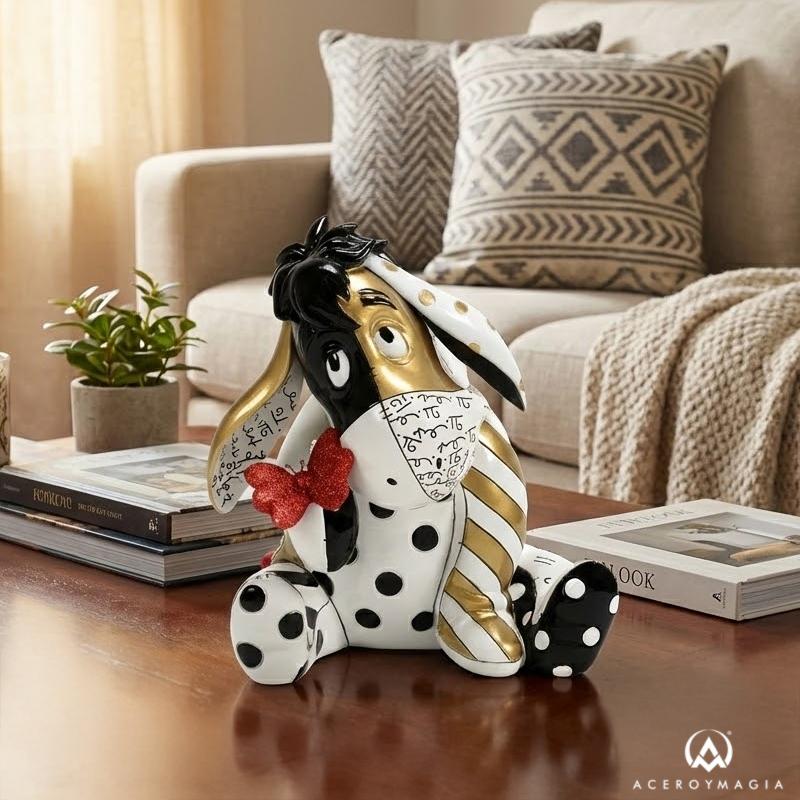 La magia del color cobra vida en esta figura Eeyore The Pooh Midas Recolor de Romero Britto, una pieza que transforma cualquier estantería en un rincón artístico lleno de emoción. Su acabado en resina de alta calidad, su estilo inconfundible y su elegante combinación de dorados, blancos y negros hacen de este personaje un icono contemporáneo del universo Disney reinterpretado con una estética vibrante y cuidada. Con una altura de 20 cm, esta creación se convierte en un detalle perfecto tanto para coleccionistas como para amantes del arte pop moderno, aportando personalidad, brillo y una presencia visual que destaca de inmediato. La colección Romero Britto Disney continúa conquistando espacios por su diseño único, y esta versión de Eeyore brilla con una energía especial que embellece cualquier ambiente con un toque sofisticado y lleno de encanto.