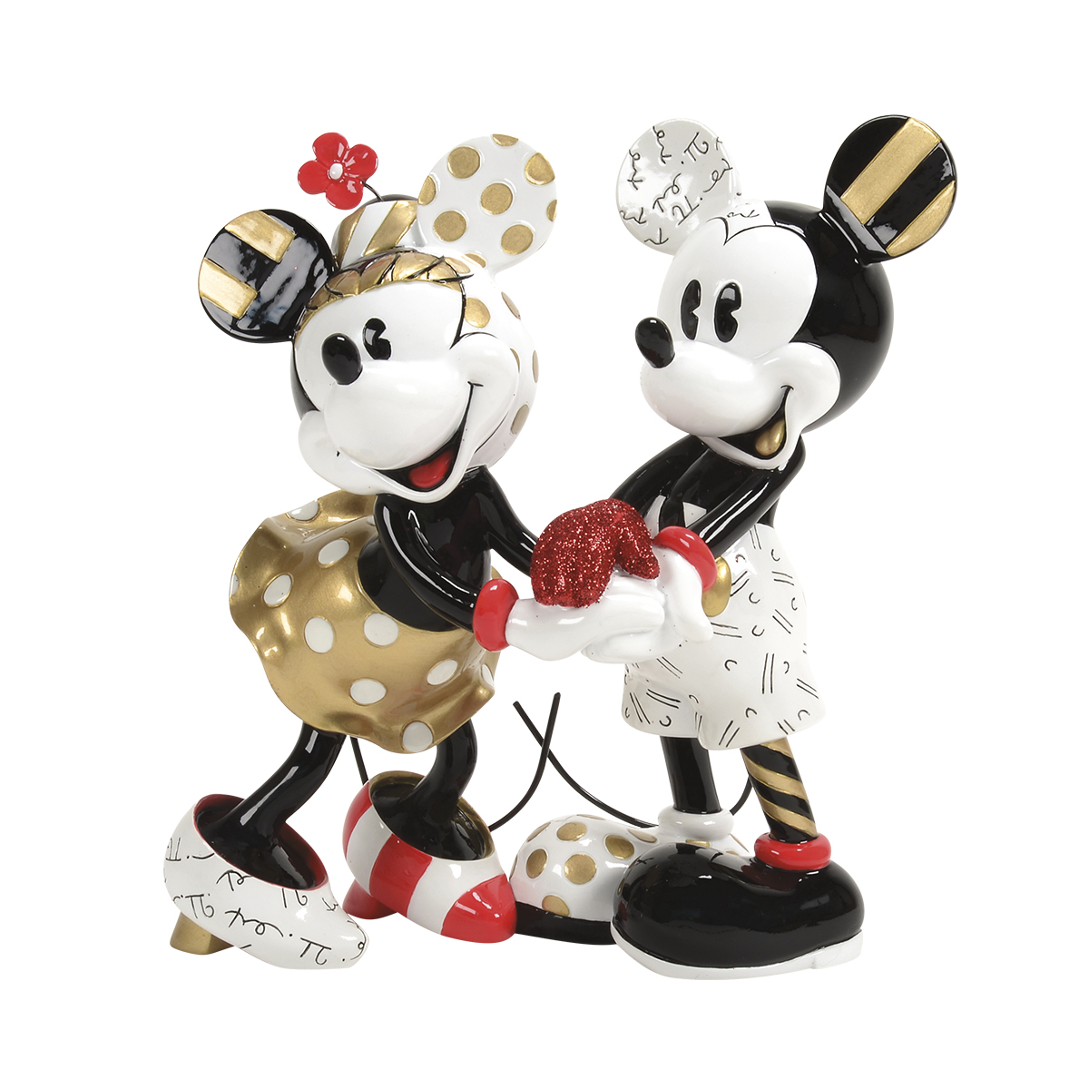 Una explosión de color, elegancia y estilo contemporáneo se hace presente en esta figura Mickey and Minnie Midas Recolor, una creación en resina del prestigioso artista Romero Britto que combina líneas modernas, patrones vibrantes y un acabado brillante repleto de carácter. Con una altura de 20,0 cm, esta pieza destaca por su juego de tonos dorados, blancos, negros y rojos, que envuelven a Mickey y Minnie en un gesto lleno de complicidad y alegría. El diseño incorpora detalles icónicos del artista, como trazos gráficos, formas geométricas y un toque glamuroso que transforma la figura en un punto focal ideal para estanterías, vitrinas o espacios decorativos. Cada superficie refleja un trabajo minucioso que equilibra arte pop, calidez y fuerza visual, ofreciendo una figura decorativa que aporta personalidad y un estilo único inspirado en el mundo del cine y la cultura contemporánea. Esta obra se convierte en una pieza imprescindible para quienes valoran colecciones con identidad propia y desean añadir un toque de sofisticación creativa al hogar.