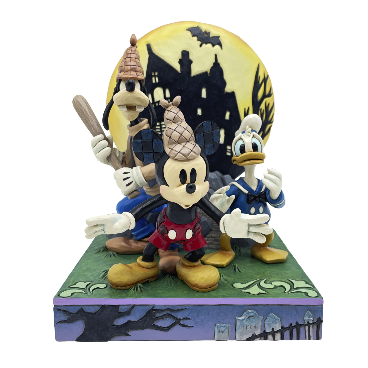 Una escena clásica cobra nueva vida con esta impresionante figura Mickey Mouse Lonesome Ghosts, una obra en resina de Jim Shore que destaca por su estilo artesanal y su inconfundible carácter narrativo. Con una altura de 23,0 cm, esta pieza combina la estética tradicional del artista con la esencia aventurera de Mickey, Goofy y Donald, creando una composición llena de dinamismo y encanto. Cada trazo, textura y color potencia la sensación de movimiento y profundidad, convirtiéndola en una figura capaz de transformar cualquier estantería o vitrina en un pequeño escenario cinematográfico. Su cuidada elaboración transmite autenticidad y calidad, y su presencia escénica añade un toque único para quienes disfrutan del arte inspirado en el universo Disney. Esta figura no solo decora, sino que aporta emoción, nostalgia y un estilo distintivo que la convierte en una pieza imprescindible para quienes buscan enriquecer su colección con algo verdaderamente especial.