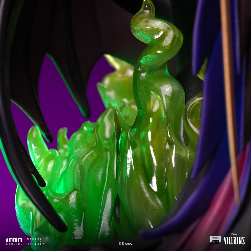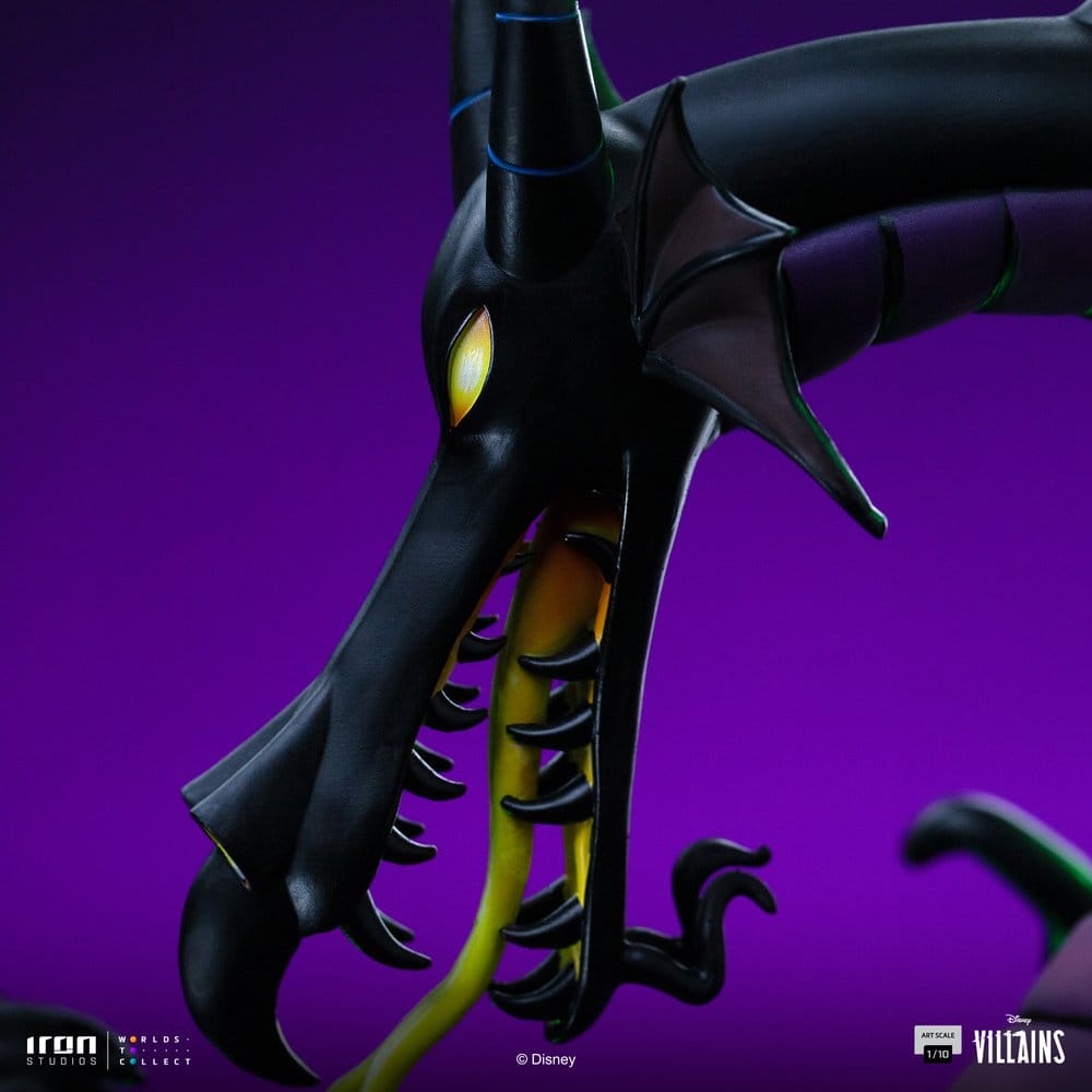 La oscuridad más elegante de Disney cobra vida en esta espectacular estatua Maléfica Disney de la línea Disney Villains, una pieza con presencia imponente que convierte cualquier colección en un auténtico punto de atención. Esta figura Disney Villains con licencia oficial, fabricada en resina y creada a escala 1/10, reproduce a Maléfica con una puesta en escena majestuosa, acompañada por su dragón y rodeada de efectos verdes que refuerzan su aura poderosa, teatral y amenazante. Su diseño destaca por el equilibrio entre volumen, detalle y acabado, con una composición que transmite carácter desde cualquier ángulo y una estética pensada para quienes valoran las piezas de exposición con fuerza visual. Con unas medidas aproximadas de 39,6 cm de alto, 25,9 cm de ancho y 32,7 cm de fondo, esta figura Maléfica resina ofrece un tamaño ideal para lucir en vitrina, estantería o zona gaming sin pasar desapercibida. La combinación de tonos oscuros, púrpuras intensos y transparencias verdosas aporta profundidad a la escena y refuerza la personalidad de uno de los grandes iconos de los villanos Disney. Esta pieza resulta especialmente atractiva para coleccionistas que buscan una estatua premium de gran presencia, fiel al universo original y con un acabado que transmite calidad desde la base hasta la expresión del personaje. La Disney Villains Art Scale Statue 1/10 Maleficent 40 cm no solo decora, también eleva la colección con una presencia escénica rotunda y un nivel de detalle que encaja perfectamente en espacios dedicados al cine, la animación y el coleccionismo de alto nivel.