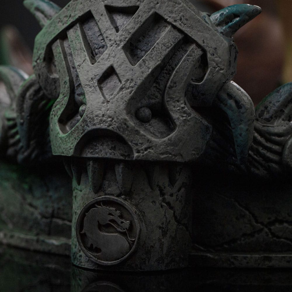 Puro carisma hollywoodense en escala de colección con la Mortal Kombat Art Scale de Iron Studios Johnny Cage, una figura 1/10 oficialmente licenciada que alcanza aprox. 24 cm y está esculpida en polystone y resina con pintura a mano de alto detalle; la pose confiada con gafas oscuras y muñequeras metálicas luce sobre una base temática inspirada en Outworld con texturas de roca y emblemas, aportando presencia premium sin ocupar demasiado espacio, perfecta para vitrinas y estanterías; la combinación de materiales robustos y acabados precisos realza la musculatura, los pliegues del short y los matices del pedestal, ofreciendo un coleccionable de merchandising oficial pensado para durar, coordinar con otras piezas de la línea Art Scale y elevar cualquier colección con una pieza de edición limitada que destila estilo cinematográfico y autenticidad.