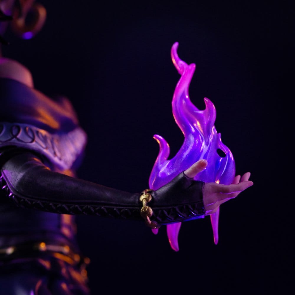 Fabricada en resina de alta calidad, con posibles componentes en polystone, ABS, PVC, metal y tela, esta figura coleccionable de Liliana Vess ofrece un acabado pintado a mano que realza con enorme precisión los pliegues del vestido, la expresión del rostro, los efectos de energía violeta y la base repleta de criaturas surgidas de su magia. Sus medidas aproximadas de 31 x 17 x 16,8 cm, dentro de la escala 1/10, permiten disfrutar de una estatua con altura, volumen y presencia escénica sin exigir un espacio excesivo. La composición transmite movimiento, autoridad y un aura sobrenatural muy fiel al personaje, mientras que la característica especial de incluir 2 cabezas añade valor expositivo y permite personalizar la presentación según el estilo que se quiera mostrar en la colección.
