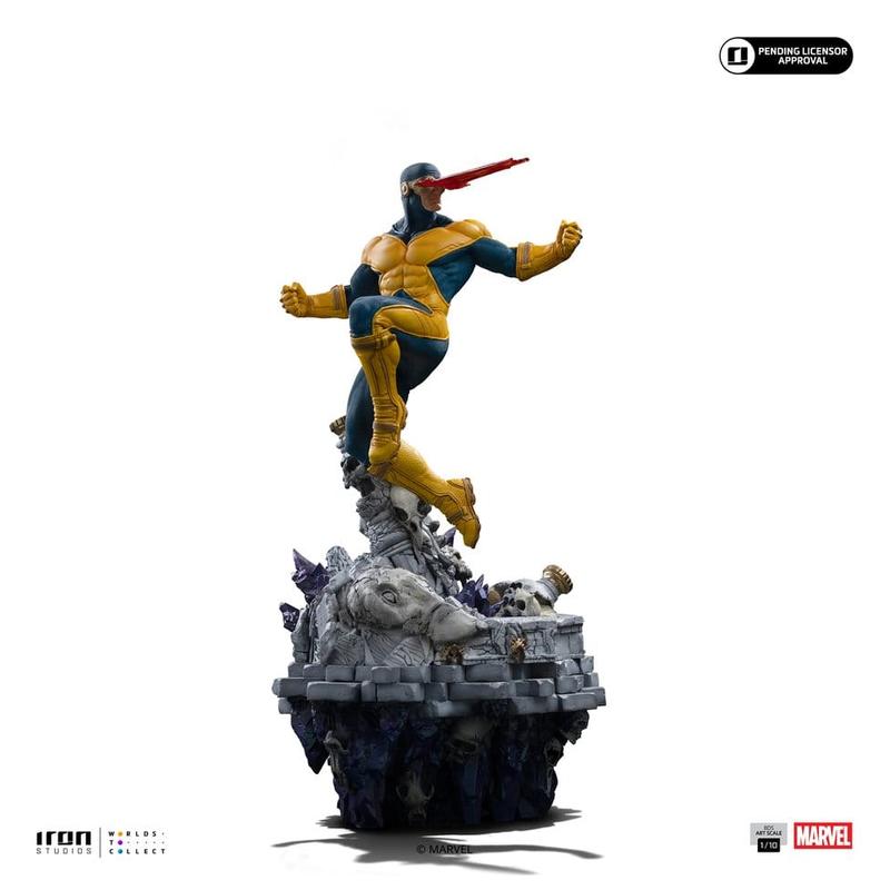 La estatua Marvel Comics Cíclope Deluxe en escala 1/10 destaca desde el primer vistazo por su pose aérea, la fuerza visual del uniforme clásico y una base de gran impacto que eleva la pieza a un nivel superior dentro del coleccionismo Marvel. Esta creación oficial de Iron Studios Cíclope Deluxe está realizada en resina y presenta una composición pensada para transmitir movimiento, liderazgo y poder, con el icónico rayo óptico como protagonista de una escena que llena de personalidad cualquier vitrina. Con unas medidas aproximadas de 32,5 cm de alto, 15,2 cm de ancho y 14,7 cm de fondo, ofrece un tamaño muy equilibrado para lucir detalles y presencia sin ocupar un espacio excesivo, mientras su acabado cuidado refuerza el valor decorativo y coleccionable de la pieza. La figura Cíclope Marvel 1/10 incluye además cabeza alternativa y efectos intercambiables, un extra muy atractivo para personalizar la exposición y dar más dinamismo al conjunto. Todo en esta estatua transmite carácter, desde la anatomía del personaje hasta la escenografía de la base, convirtiéndola en una opción excelente para quienes buscan una pieza oficial de Marvel Comics con una estética poderosa, materiales de calidad y una presentación capaz de convertirse en el centro de atención de cualquier colección.