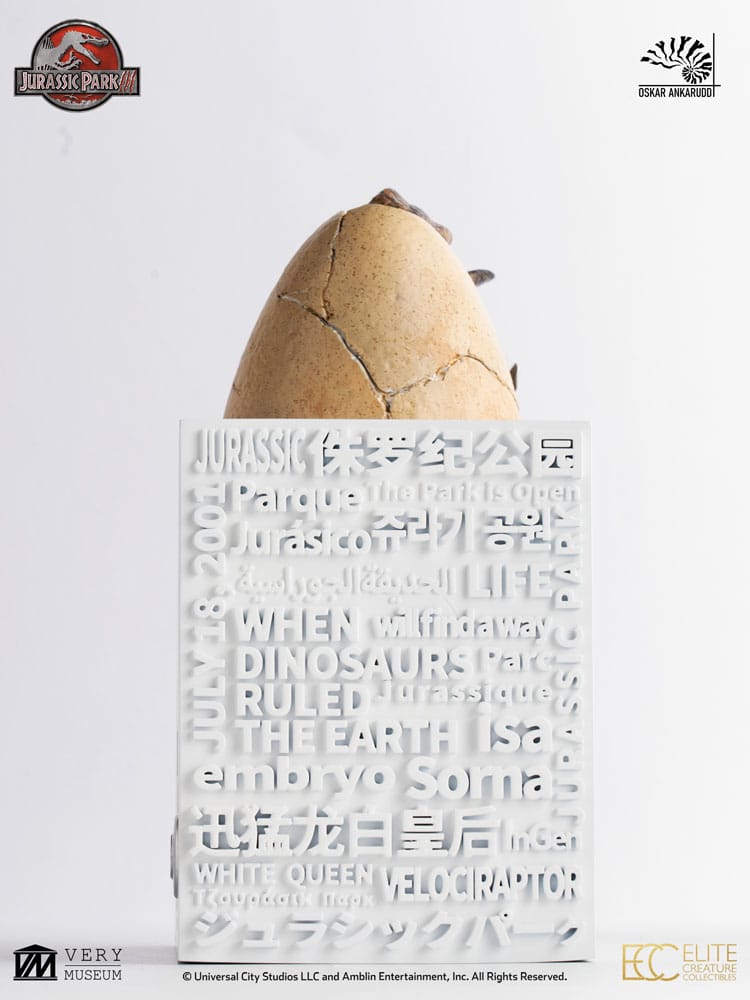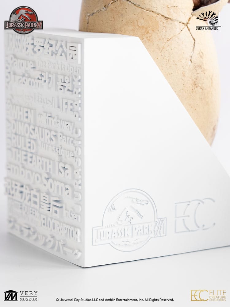 El nacimiento de una leyenda del cine cobra forma en una pieza diseñada para destacar desde el primer vistazo, una creación que transmite autenticidad, precisión artística y un profundo respeto por el universo cinematográfico que representa. Esta estatua Jurassic Park de la línea Elite Creature Collectibles reproduce el icónico momento del huevo eclosionando con un nivel de realismo extraordinario, fruto de la colaboración con el artista Oskar Ankarudd y de un estudio anatómico minucioso basado en criterios científicos. Cada detalle del huevo de dinosaurio y de la cría emergiendo ha sido trabajado en resina de alta calidad, con texturas de piel realistas y ojos de cristal de nivel cinematográfico que aportan una presencia impactante en cualquier colección. Con una altura total aproximada de 13,2 cm con base temática incluida, esta pieza combina elegancia y carácter, ofreciendo además un sistema magnético que permite separar el huevo de la base y un embrión adicional que añade valor narrativo al conjunto. Limitada a solo 300 unidades en todo el mundo, esta figura coleccionable Jurassic Park no es solo un objeto decorativo, sino una inversión emocional y estética pensada para coleccionistas exigentes que buscan exclusividad, fidelidad al material original y una conexión auténtica con una de las sagas más influyentes del cine.