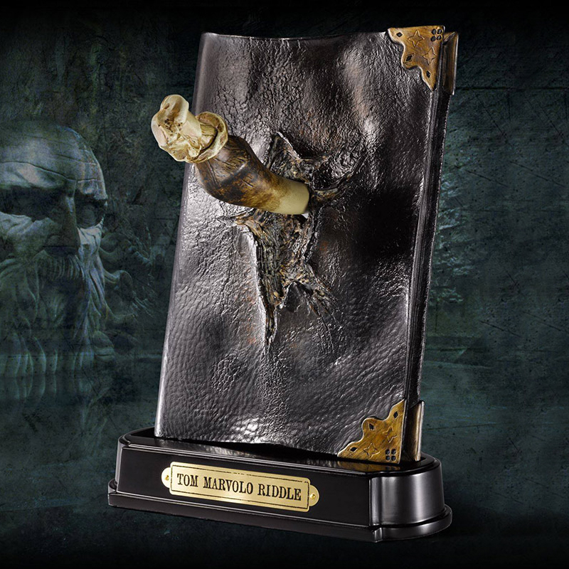 Adéntrate en la oscura historia de Lord Voldemort con la Réplica Oficial del diario de Tom Marvolo Riddle, atravesado por el colmillo del Basilisco.