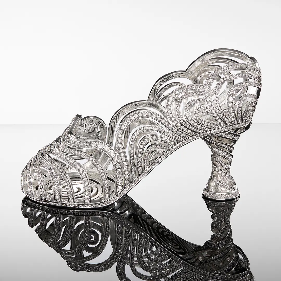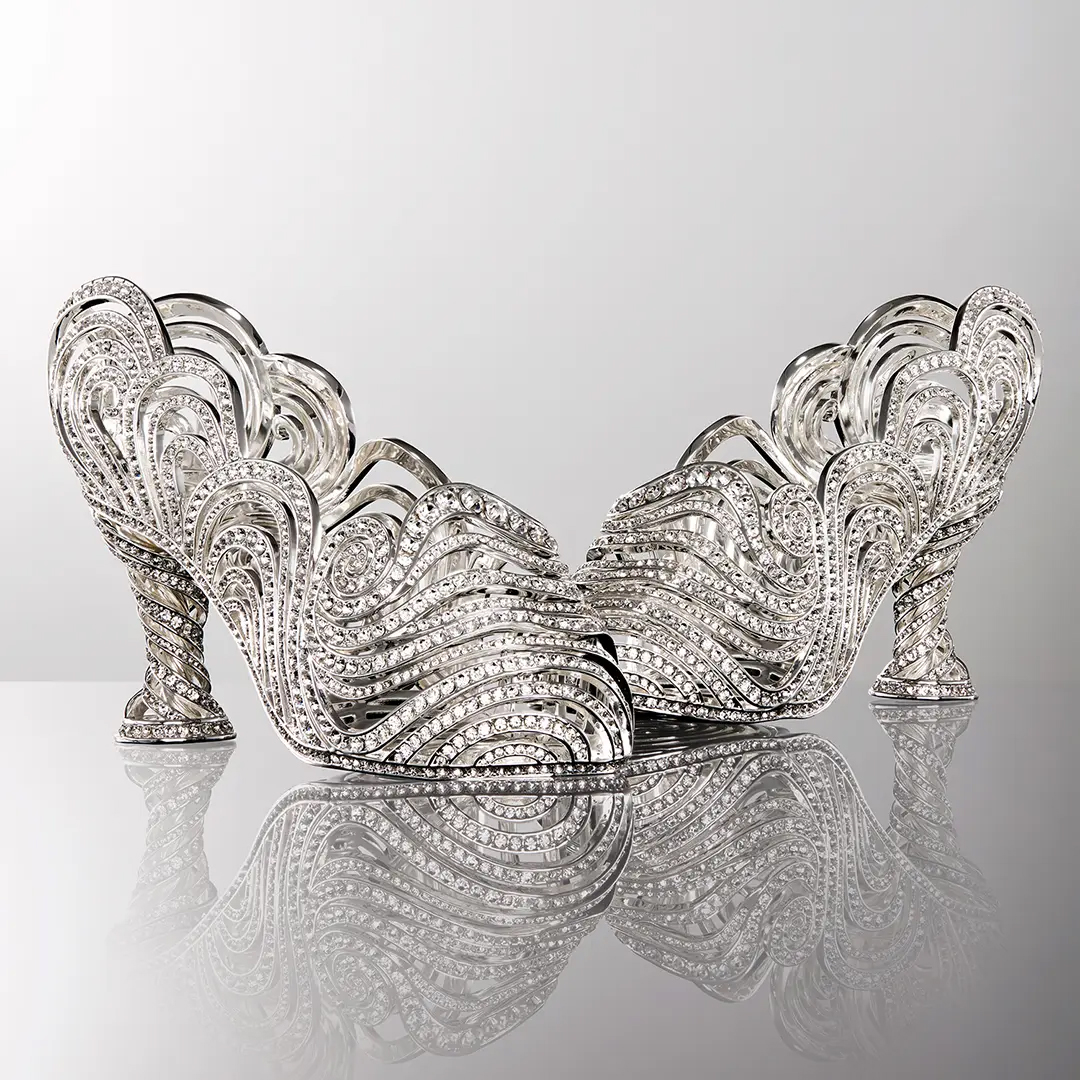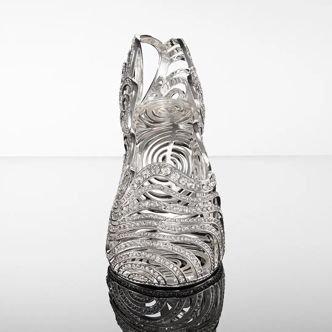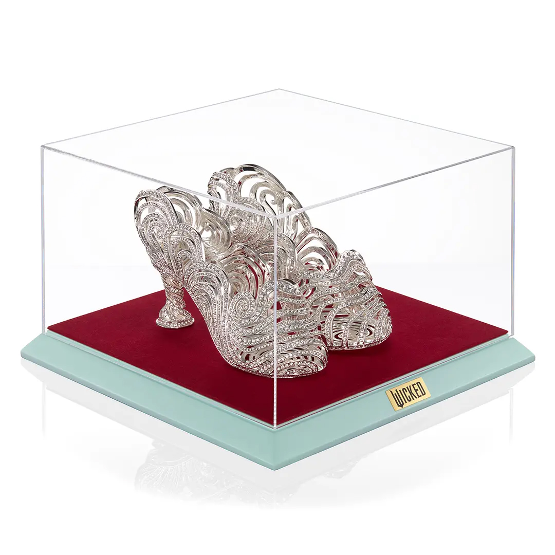 Brillan como un hechizo en pleno escenario: esta réplica auténtica de las Zapatillas de Plata de Nessarose, vista en la película Wicked, está chapada en plata y engastada a mano con más de 2.000 cristales europeos que destellan a cada giro de la luz. Sus arcos delicados, las gemas resplandecientes y el inconfundible tacón en espiral capturan la elegancia del Mundo de Oz con una fidelidad exquisita, pensada para colecciones que buscan piezas con alma. Cada par pertenece a edición limitada y llega en una caja color menta con el logo de Wicked, acompañado de una vitrina acrílica de 30 × 30 × 18 cm con base de madera color menta y plataforma de terciopelo rojo rubí, un guiño directo a la icónica caja de la película. Concebido exclusivamente para exposición, este objeto de colección se entrega listo para lucir en tu estantería o vitrina, con medidas de 7,5 × 11,5 × 20 cm por zapato, y se convierte en la pieza central de cualquier selección de merchandising Wicked de alto nivel, perfecta para quienes valoran el coleccionismo de cine con materiales premium y acabados impecables.