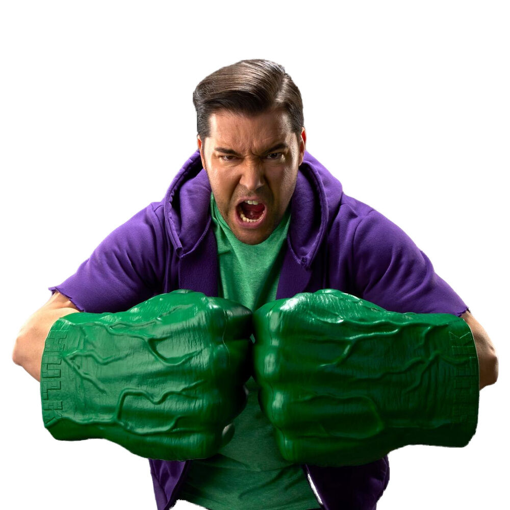 Cada puño presenta un diseño de gran tamaño, con unas medidas aproximadas de entre 30 y 35 cm de alto, proporción suficiente para recrear el impacto del personaje sin perder comodidad al llevarlos. La estructura está realizada en material sintético ligero, con relieve marcado, textura de piel y acabado verde satinado que refuerza el efecto visual. No se trata de una figura estática al uso, sino de una pieza coleccionable con función electrónica, capaz de activar 13 sonidos y frases al agitarla, golpear el aire o impactar contra una superficie firme.