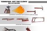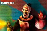 Una presencia macabra cobra vida con la figura Art the Clown Terrifier Deluxe de Mezco Toyz: articulada y de 18 cm de altura, incluye tres cabezas intercambiables, once manos opcionales y una base con soporte para su exhibición, acompañada de accesorios emblemáticos como unas gafas de girasol, una cabeza decapitada, una bolsa de basura repleta de horror y un cerebro, además de un arsenal letal compuesto por un soplete, dos martillos, un cuerno, dos cuchillos, una sierra, una pata de mesa con clavos y un gato de nueve colas; la aterradora silueta de este payaso psicópata se presenta con su traje bicolor, sombrero de copa y zapatos desgastados, todo ello en una caja de coleccionista diseñada para realzar cada detalle.