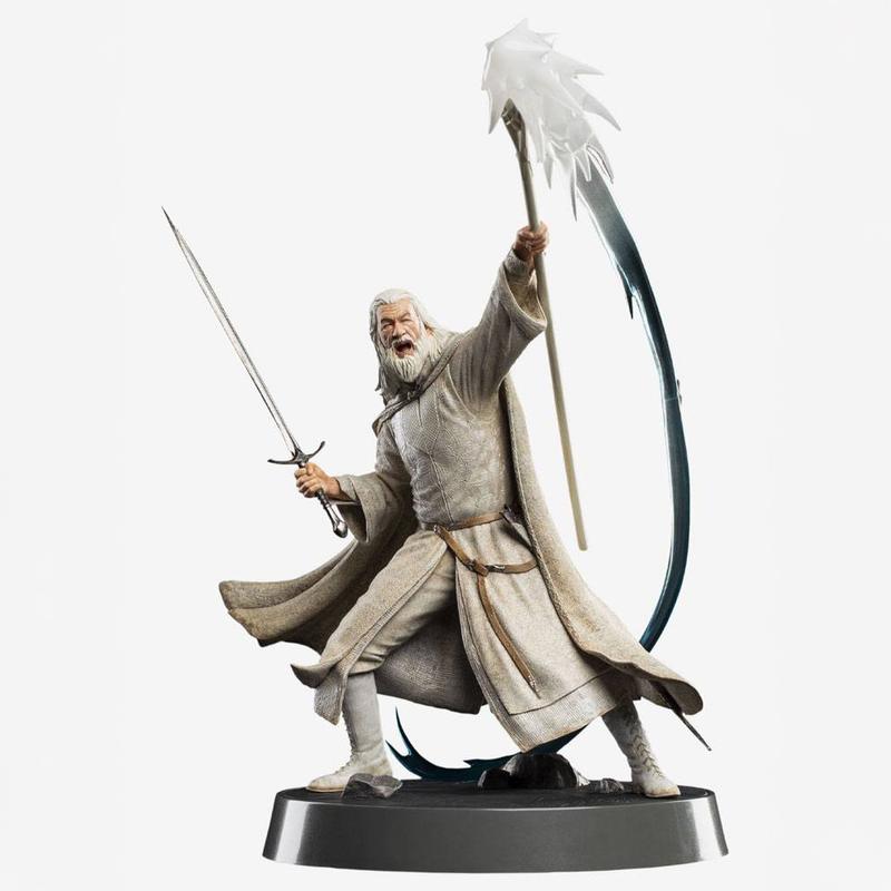 La épica de la Tierra Media entra en tu colección con la estatua Gandalf el Blanco Figures of Fandom de Weta Workshop, una pieza de 23 cm que captura al mago en su momento más imponente, listo para plantar cara a la oscuridad con el báculo en alto y la espada en mano. La pose transmite energía y liderazgo, con la capa y las telas esculpidas en pleno movimiento, recreando esa presencia “de luz” que domina el campo de batalla y convierte la figura en un punto focal inmediato en cualquier vitrina. Fabricada en PVC, combina detalle y durabilidad, con un acabado que resalta las texturas del atuendo y el gesto decidido del personaje, ideal tanto para coleccionistas de The Lord of the Rings como para quienes buscan una pieza vistosa para decorar un despacho o una estantería temática. Diseñada como compañera del Witch-King of Angmar, esta estatua es perfecta para recrear el choque de Minas Tirith y elevar tu colección con una escena que respira cine y fantasía en cada ángulo.