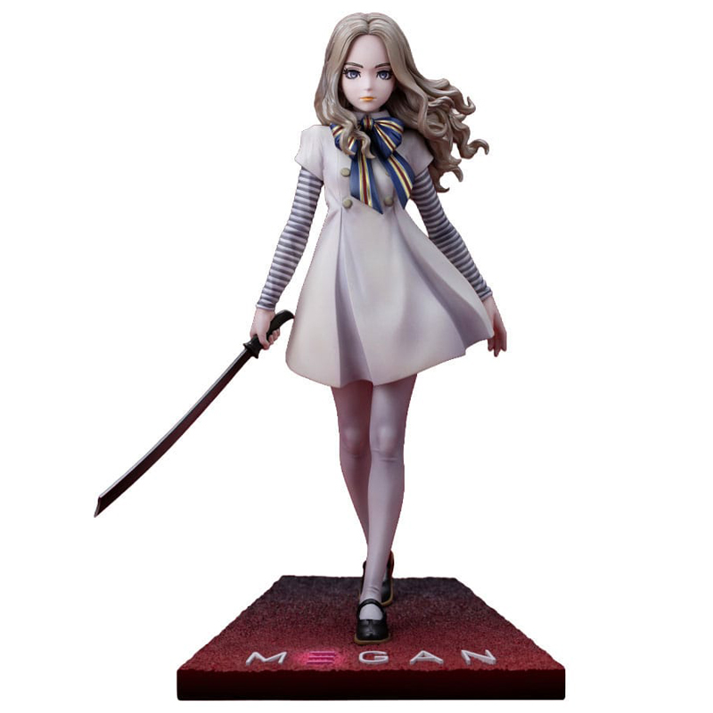 Elegancia letal con sello artístico: M3GAN Bishoujo despliega su presencia hipnótica en una pieza de colección que une cine y diseño con maestría. Esta estatua M3GAN 21 cm en figura PVC 1/7 M3GAN captura la vibra inquietante de la muñeca de IA con una pose firme que avanza hacia el espectador, rostro preciso y cabello rubio recreado con pintura de alto detalle según la reinterpretación del ilustrador Shunya Yamashita para la línea HORROR BISHOUJO. El vestido fluido y las mangas a rayas presentan sombreados sutiles que realzan pliegues y volúmenes, mientras que la base tipo diorama evoca una escena memorable e incorpora el logotipo “M3GAN” en 3D para una exhibición con carácter. Un acabado limpio, proporciones elegantes y una escultura de movimiento convincente convierten esta estatua en una pieza imprescindible para vitrinas de colección, ideal para quienes buscan calidad tangible, fidelidad al personaje y un toque de estilo contemporáneo en su estantería.
